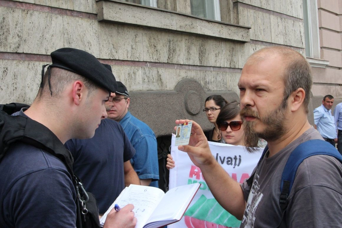 Agresivitate din partea forţelor de ordine a existat, în schimb, la acţiunile directe. De exemplu, îmi aduc aminte când am fost la Ministerul Mediului să-l băgăm în carantină, în 2012, iar jandarmul de acolo a început să dea cu bastonul în banner, să bată banner-ul. După aia au venit mai mulţi, ne-au luat pe sus, mâini sucite, şuturi în cur, târât pe jos, ţinut mâna la spate, lucruri din astea.