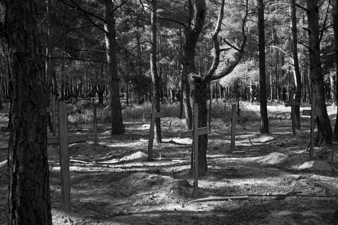 După ce armata ucraineană a apărat și eliberat regiunea Kyivului, m-am întors acolo. Am început imediat să lucrez în teritoriile proaspăt ieșite de sub ocupație. M-am dus la Bucea, la Borodeanka, în satele din apropiere. Am văzut prima distrugere, prima moarte. Am văzut corpurile celor morți scoase de sub dărâmăturile caselor. Am văzut mașini arse pe marginea drumului – oamenii încercaseră să iasă și să fugă, însă rușii îi împușcaseră și le incendiaseră cadavrele. Mai era și mult echipament militar la marginea șoselelor. Și multe mine peste tot, sute de dispozitive neexplodate. Pretutindeni se simțea prezența proaspătă a rușilor, tocmai fuseseră acolo. Pretutindeni erau gamelele lor, tranșeele lor, uniformele lor militare, urmele crimelor lor.