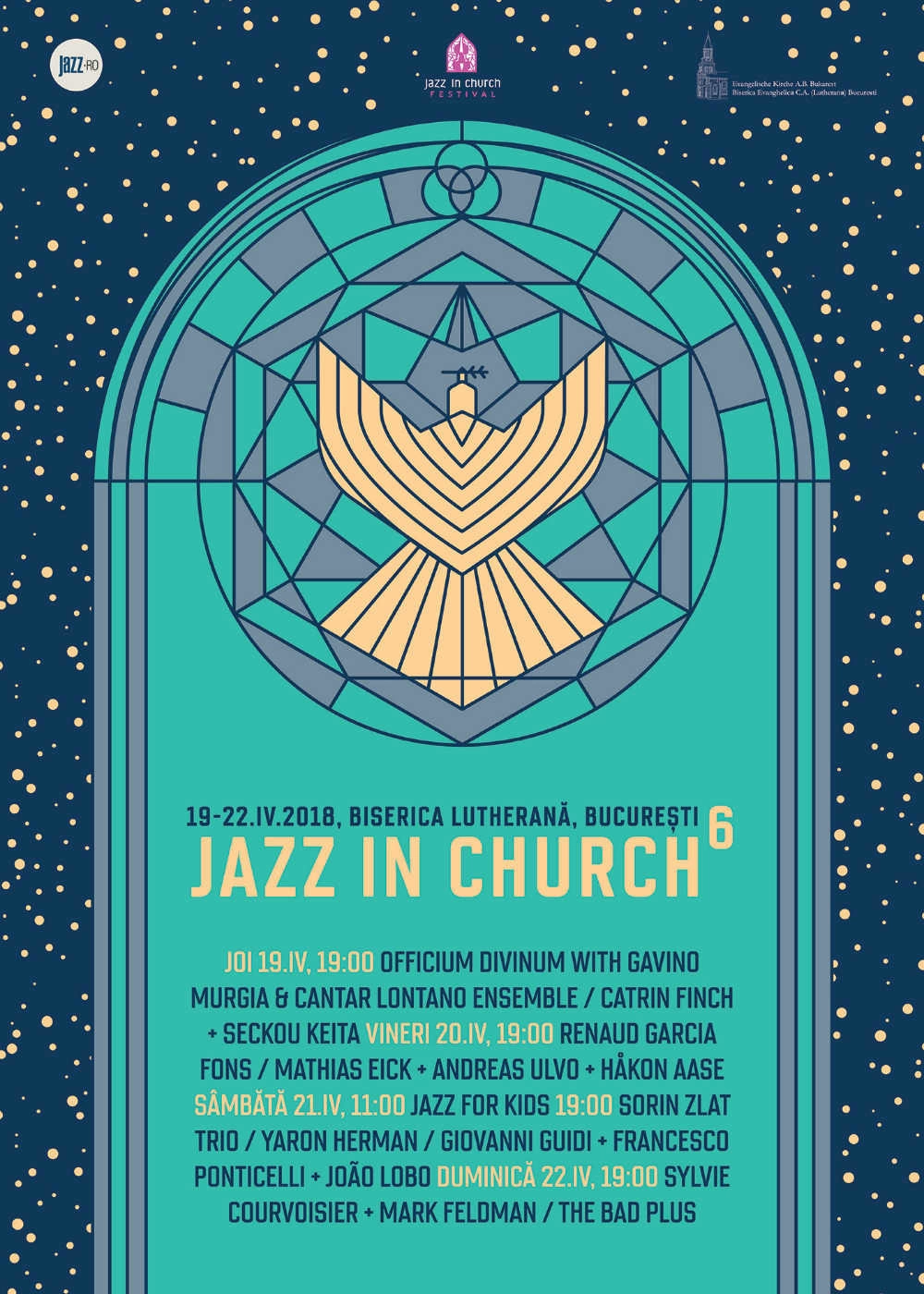 Jazz in Church se întâmplă pentru al șaselea an consecutiv, de joi, 17 aprilie, până duminică, 22 aprilie, tot la Biserica Lutherană din București, ceea ce-i aproape un miracol, dacă stai să te gândești la cât de puțin permanente sunt lucrurile din jurul nostru în ultima vreme. Nu mai spun cât de improbabil pare să organizezi un festival de jazz (dar și de contemporary classical, world music, muzică medievală ș.a.) într-o biserică și să poți aduce sub același acoperiș artiști din culturi diferite, într-un spațiu al interconfesionalului, al sunetelor și-al liniștii dintre sunete, unde prin muzică putem fi cu toții, în sfârșit, împreună.