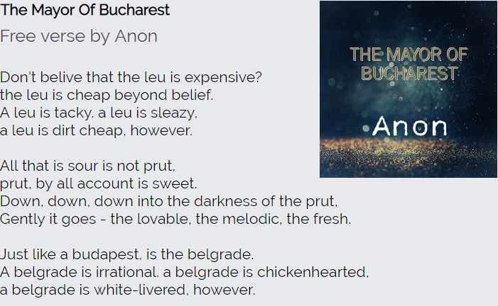 În negura copilăriei internetului, părea că nu aveai mare lucru de făcut online. Dădeai un mail, descopereai emoticoane pe Messenger ( 8==D – doar copiii anilor 90 o să își amintescă ce-i aia). Dar dacă erai șoarece de bibliotecă de poezie, ca mine, undeva prin 2000-2001 descopereai generatoarele de poezie. Sunt câteva linii de cod care randomizează cuvinte și-ți permit să pastișezi orice formă vrei tu: de la sonete și rondele, la parodii asumate după Sylvia Plath, vers alb, poezie cinetică etc.