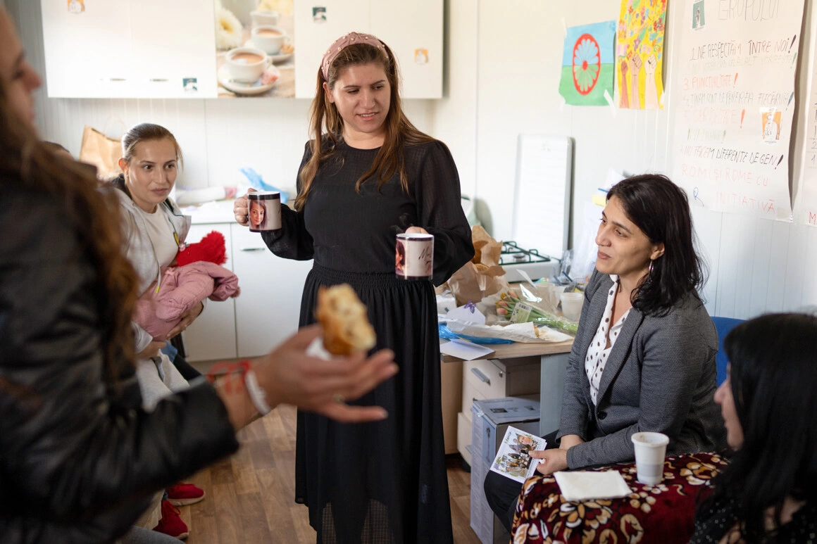Într-un container pe o stradă prăfuită din Mizil, județul Prahova, mai multe femei și câțiva bărbați sărbătoresc 8 martie – nu cu flori și bomboane, ci cu discuții și planuri.