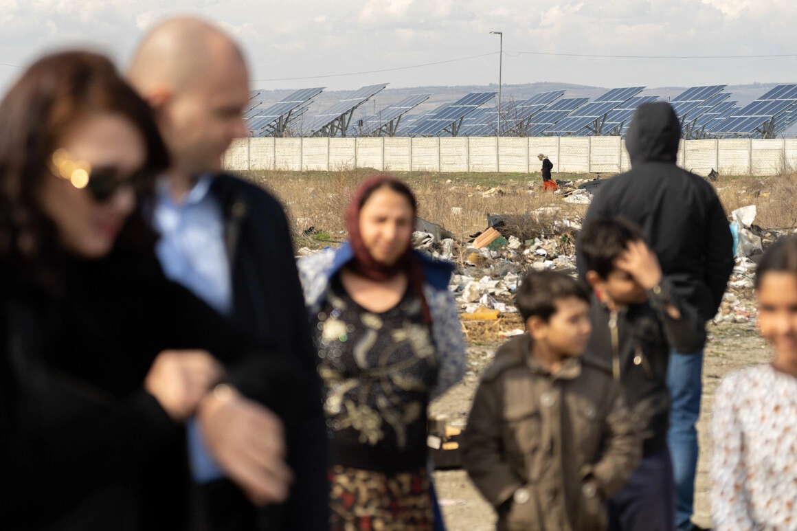 Unii oameni se strâng și intră în vorbă, ba cu oficiala europeană, ba cu femeile de la E-Romnja. Sunt întrebate de ajutoare sociale, de problemele cu gunoiul, de cum mai merge una sau alta. „This is my son”, îi spune cu mândrie un bărbat comisarei, când aceasta se oprește să vorbească cu un copil.