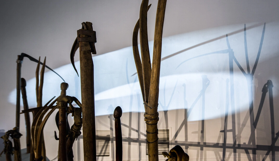 „Suntem în 1907, tehnica fotografică e precară, sursele de imagine sunt foarte puține și imagini video, film, nici atât nu avem”, spune arhitectul Constantin Goagea, cel care a conceput și realizat designul expoziției. „E o încleștare foarte primitivă între niște oameni foarte săraci, care pun mâna pe instrumentele de muncă, pe uneltele pe care le au, coasă, topor. Sunt niște unelte perisabile, slabe șanse să fi rămas ceva și cu sângele cuiva de atunci.” Astfel, în lipsa unor artefacte istorice pe care să le poți asocia cu certitudine cu răscoala, pe care să le „legi de ADN-ul momentului”, expoziția nu se putea baza doar pe lucruri puse în vitrină și însoțite de legende.