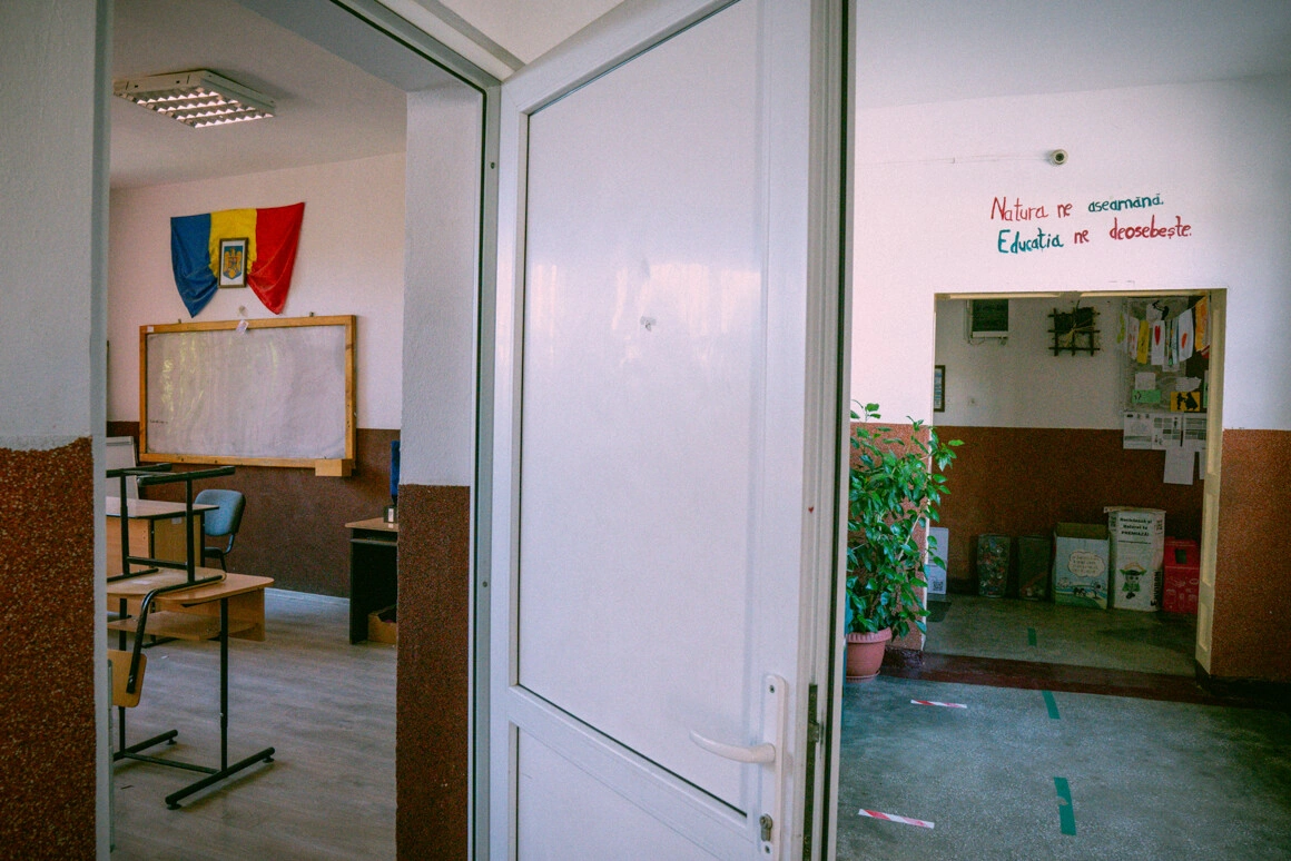 Ajung la secretariatul liceului și întreb de directoare, Oana-Raluca Baciu. Mi se spune că trebuie să apară în curând. Stabilisem de ceva vreme să ne vedem, pentru că sunt convinsă că e persoana cea mai în măsură să îmi povestească despre viața într-o instituție de învățământ din mediul rural. În România anului școlar 2020-2021, zice Ministerul Educației, mai erau doar 232 de licee în mediul rural, iar cel din Lechința e unul dintre cele care nu s-au închis încă.