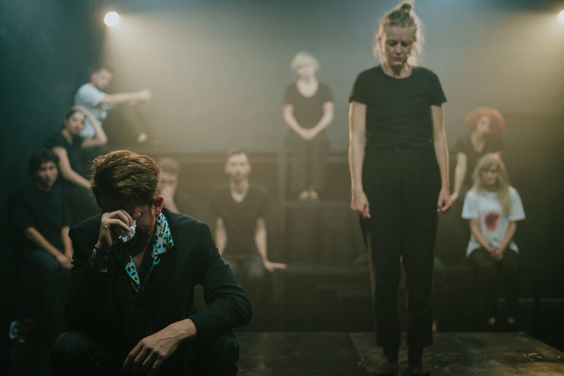 Neobișnuit la o producție independentă, Visul este o creație amplă, construită într-un spațiu mic, cu 13 actori, 11 compozitori, coregrafie și pregătire muzicală, ale căror rezultate (bune) se văd în spectacol, și cu o scenografie care folosește inteligent elemente „civile” ale scenei, de la podium și gradene la costumele afișate la vedere (autor Mihai Păcurar). Ar putea părea înghesuit, ca decor și arhitectură teatrală, dar nu e, iar reușita este deopotrivă a echipei creative și a performerilor. Miezul dramaturgic este un spectacol în spectacol: o grupă de studenți lucrează convențional, la clasă, Visul unei nopți de vară de Shakespeare, într-o perspectivă impusă de profesor și care include misoginismul și libidinoșenia acestuia (forțează studenții să se dezbrace, îi atinge sau îi sărută împotriva voinței lor sau profitând de obediența acestora față de el). Relația profesorului cu studenții și atmosfera din facultate se dezvoltă în afara miezului ca un construct sociologic, ficțional și el, dar bazându-se pe mărturiile reale. Dramaturga Alexa Băcanu a făcut o muncă foarte bună, nu doar cu documentarea cazurilor de abuz, ci și cu textul, o ficțiune cu citate reale care articulează problemele din spațiul educațional artistic într-un caz exemplar de abuz de putere și metodă pedagogică greșită (și depășită moral) prin care se încalcă etica relațiilor profesor-student.