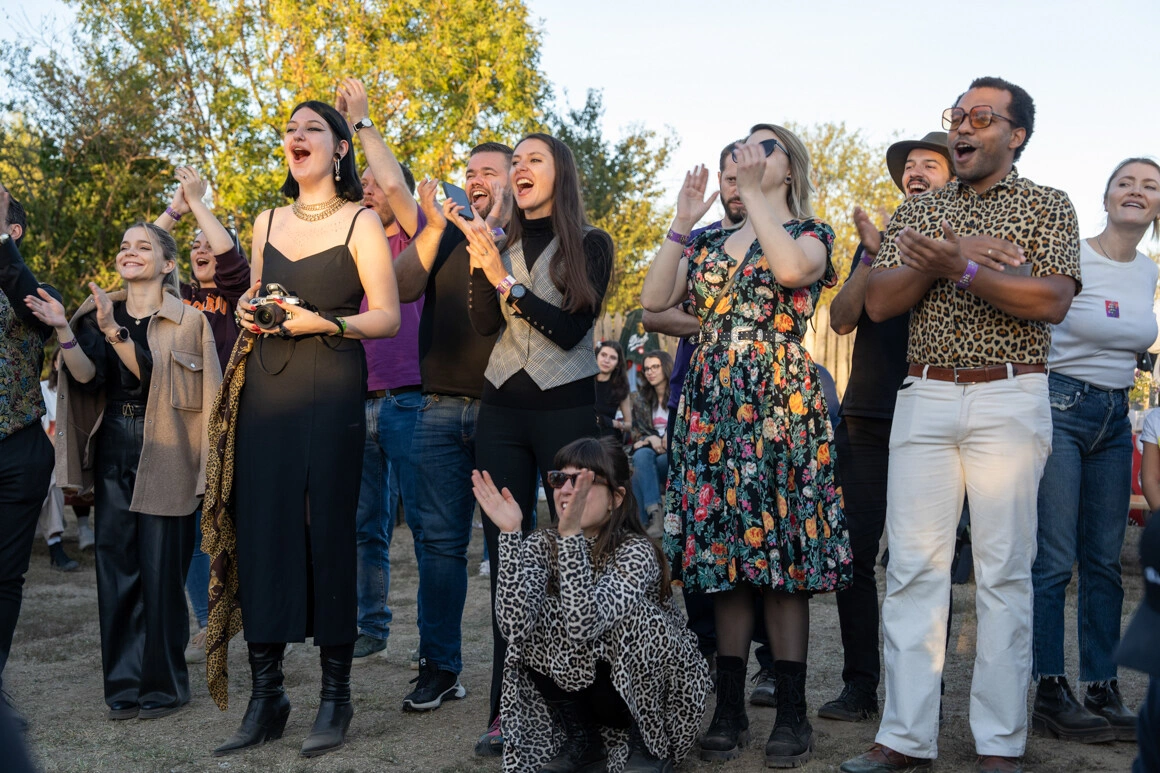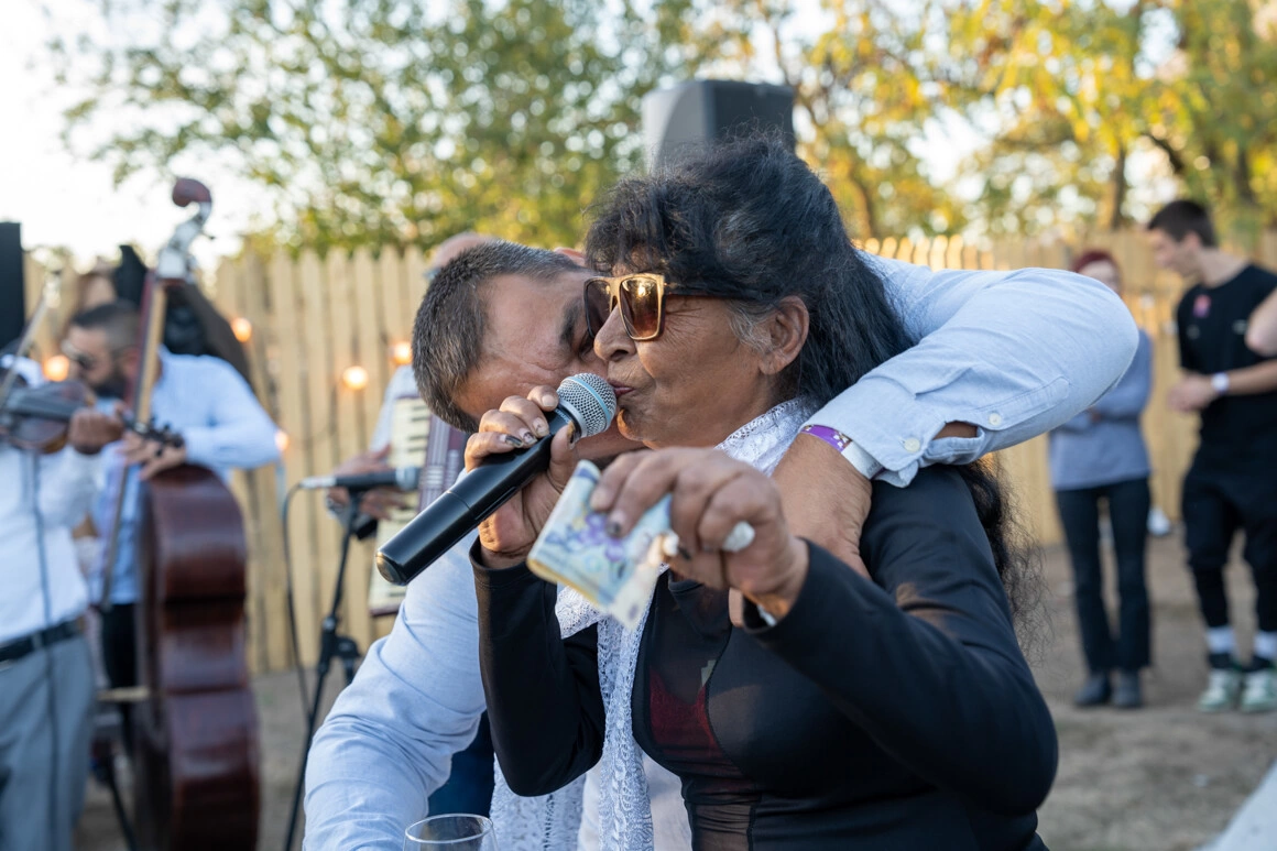 Când mai avea ședințe sau venea în vizită la Clejani, mereu se lăsa cu cântări foarte speciale. Lăutarii erau mai relaxați, mai informali. Chiar dacă inițial îi era teamă să nu afecteze intimitatea aia aducând 100 de oameni ca public, Larisa crede că a reușit să recreeze sentimentul. Surprinzător sau nu, hipsterii până în 35 de ani s-au dovedit a fi primul public-țintă. A devenit evident când ne-am îmbarcat în două autocare la Piața Victoriei să plecăm spre Clejani. Îmbrăcați în geci de piele, rochii lungi și bocanci, cămăși cu animal print și ochelari de soare cu sclipici, tinerii erau plini de energie și pregătiți de chef.
