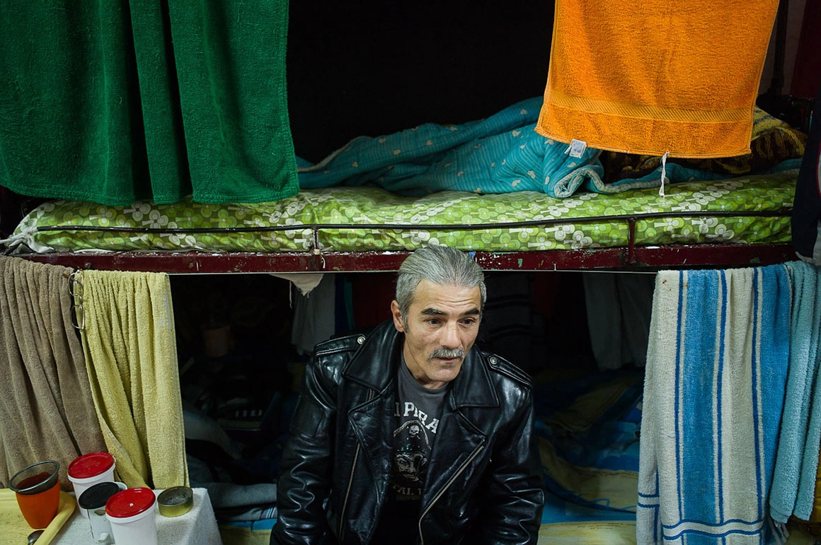 Încăperea miroase a sarmale și a transpirație. Geamurile mici, construite prea sus, aproape lipite de tavan, nu aerisesc respirațiile celor 12 bărbați care împart camera. Patul și sub-patul dezvăluie universul fiecărui deținut – haine, fotografii, aparate de ras, caserole de mâncare, pantofi, sacoșe de rafie. Un bărbat îmi oferă un scaun pe care-l acoperă cu un prosop. Mă așez.