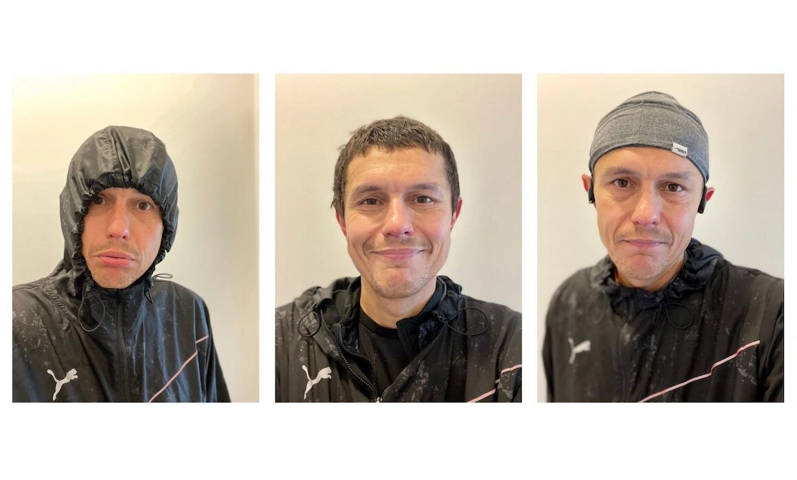 Iulian poartă o bluză de trening Puma, colanți negri lungi, peste care are pantaloni scurți, și o pereche de pantofi de alergat Nike – a treia pe care a schimbat-o de când a început alergările în august. Își potrivește căștile in ear, care i se arcuiesc în jurul urechilor, și ceasul care-i monitorizează alergările.