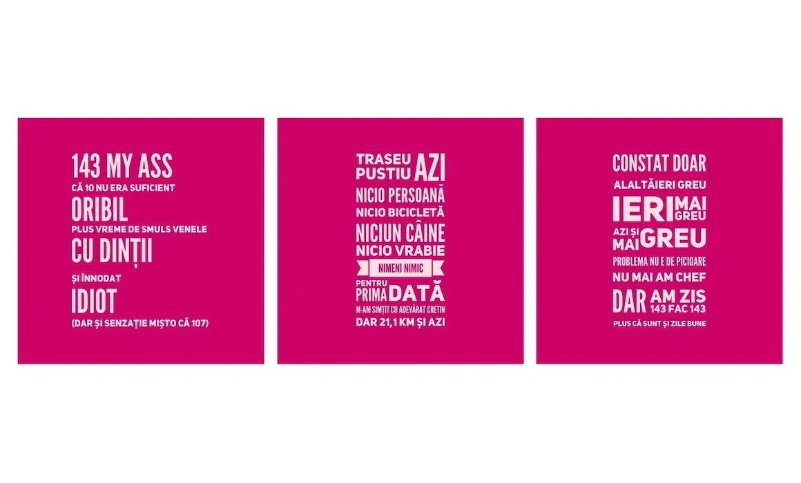Acum, când e aproape de finalul curselor, simte că planul său de a-i ajuta pe alții a devenit modul său de a se încuraja într-o perioadă complicată pe toate planurile. Să fie zilnic pe traseu a însemnat să se gândească la el, la unele decizii din trecut și să caute soluții pentru problemele care-l macină. Unele au apărut pe parcurs și ăsta a fost modul lui de le face față. Și-a pus corpul în mișcare și a acceptat suferința ca opțiune – ca vorba aceea a unui maratonist pe care obișnuia să și-o repete în gând în timpul alergărilor ca să-și dea curaj, citită de Iulian într-o carte, și pe care începea s-o înțeleagă tot mai bine: Pain is inevitable. Suffering is optional.