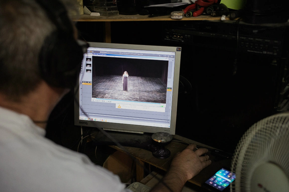 Cei din prima serie așteptau aliniați de-a lungul unui hol înghesuit cu mobilă veche de recuzită, într-o aripă de la parterul clădirii, convertită în sală pentru repetiții de teatru.