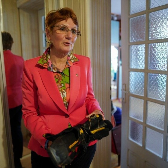 „Bună ziua, doamna munților”, o salută un coleg când intră în biroul ei. Doamna Petri poartă o cămașă colorată și un sacou roz deasupra, are unghiile coral și, la prima vedere, n-ai înțelege salutul colegului. Când întinde palmele, ies la iveală niște degerături recente.