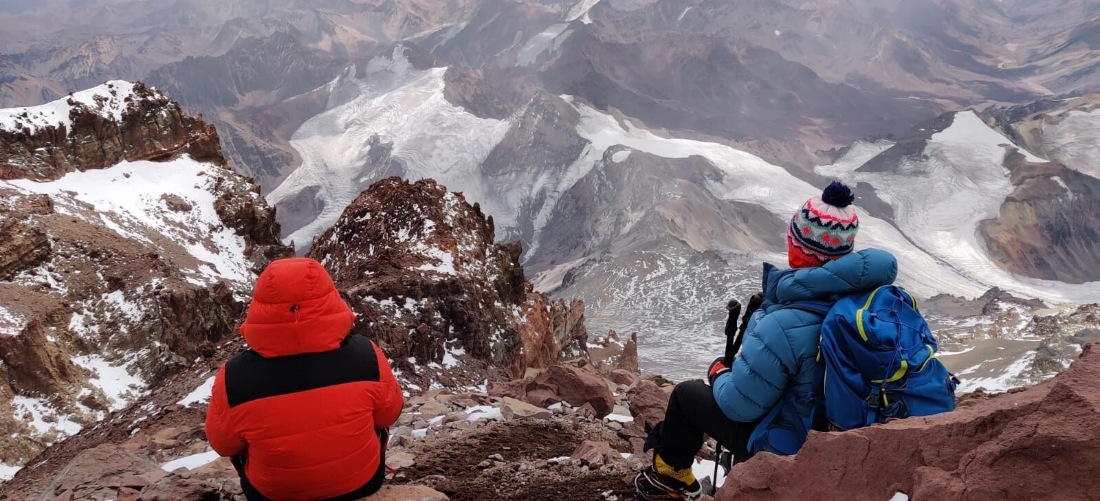 După o călătorie de 33 de ore, au ajuns în Mendoza, un oraș din vestul Argentinei, renumit pentru vinul roșu. Acolo au împărțit bagajul: o parte era dus cu catârii la tabăra de bază și o parte îl cărau în spate. Din Mendoza au mers cu un microbuz la Penitentes, o veche stațiune de ski unde s-au cazat înainte de a intra în Parcul Național Aconcagua.
