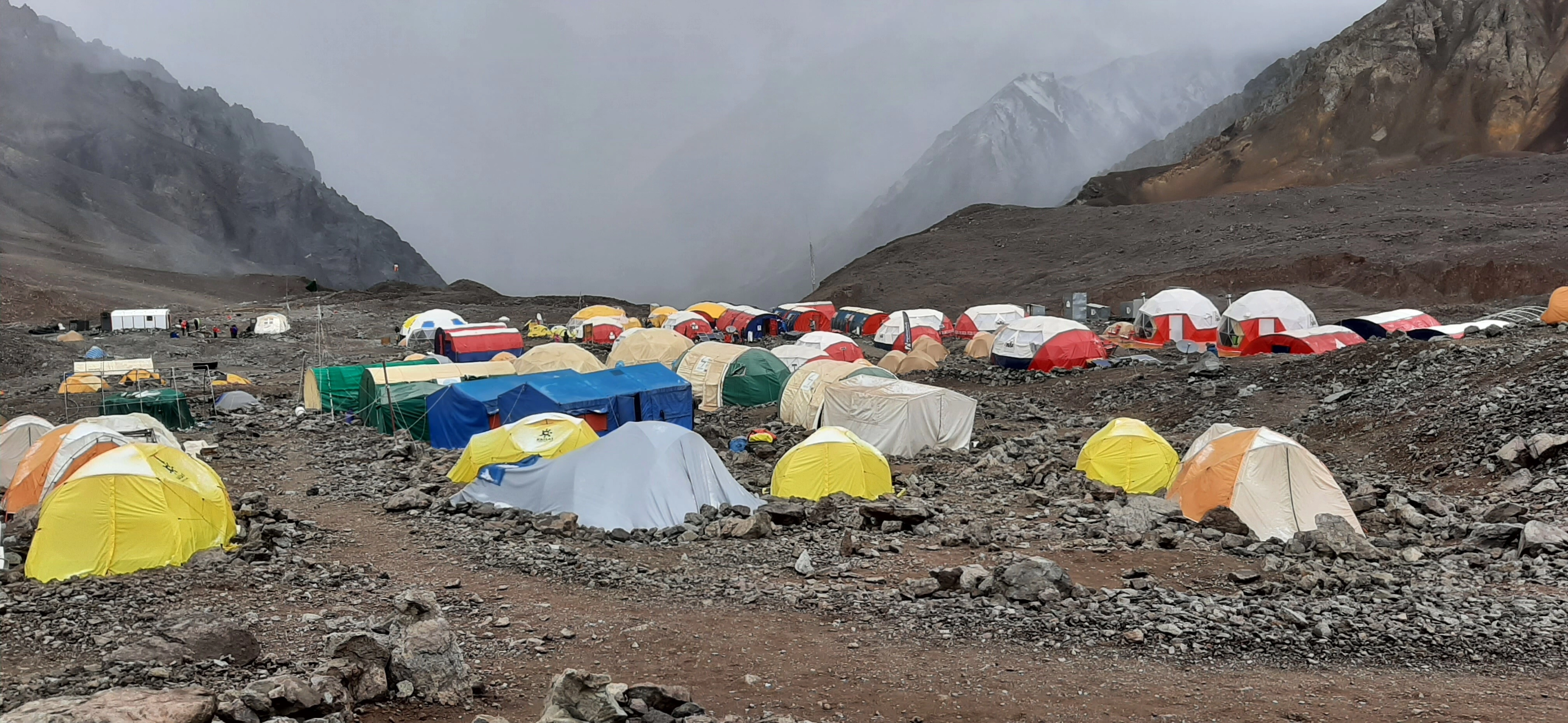 „Bravo, suntem o echipă”, i-au spus colegii. Au continuat să urce până la tabăra intermediară Nido de Condores (5.620 m), de unde avea să înceapă greul. Ca să nu care mult în spate, au hotărât să rămână toți cinci cu doar două corturi, dintre care unul era de două persoane. A împărțit un cort cu doi băieți și cu multe bagaje. „În sacul de dormit aveam pufoaica, termosul, aparatura electronică, frontalele, mănușile. Când mă întorceam pe o parte stăteam pe telefon, în partea cealaltă eram pe frontală. Noaptea nu puteai să ieși din cort (n.r. Să-ți faci nevoile) că înghețai. Erau -34 de grade. Și atunci foloseam borcane, sticle, în sacul de dormit.”