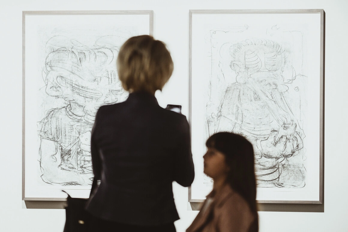M-a interesat să văd la Timișoara cum Adrian Ghenie continuă, de fapt, subiectele mai multor expoziții din 2022, generate în urma perioadei marcate de pandemie și izolare, în atelierul lui din Berlin. Cum percepe el această izolare, cum surprinde un moment în timp, ce curiozități are despre omul de secol XXI și despre ce vor deveni artistul și arta lui în mijlocul tuturor instrumentelor de inteligență artificială care creează noi limbaje vizuale de expresie. L-am descoperit și pe Adrian Ghenie care recurge acum la desen, folosind cărbune pe hârtie pentru a-și clarifica incertitudinile. Se vede foarte clar cum aceste suprafețe îi îngăduie mai multe încercări care îl vor conduce la viitoare picturi pe aceeași temă de gândire. În trei dintre aceste desene le schițează cu aceleași tușe grotești pe activistele care au aruncat cu supă peste un tablou de Van Gogh, lipindu-și apoi mâinile de pereții muzeului. E greșit să trăim cu senzația că, dacă un lucru e considerat frumos, va scăpa, pare să ne amintească Ghenie. „Să nu ne facem iluzii că legile patrimoniului sau 500 de ani de educație vor fi salvatoare și vor ține arta în muzee ca până acum”, spune chiar artistul.