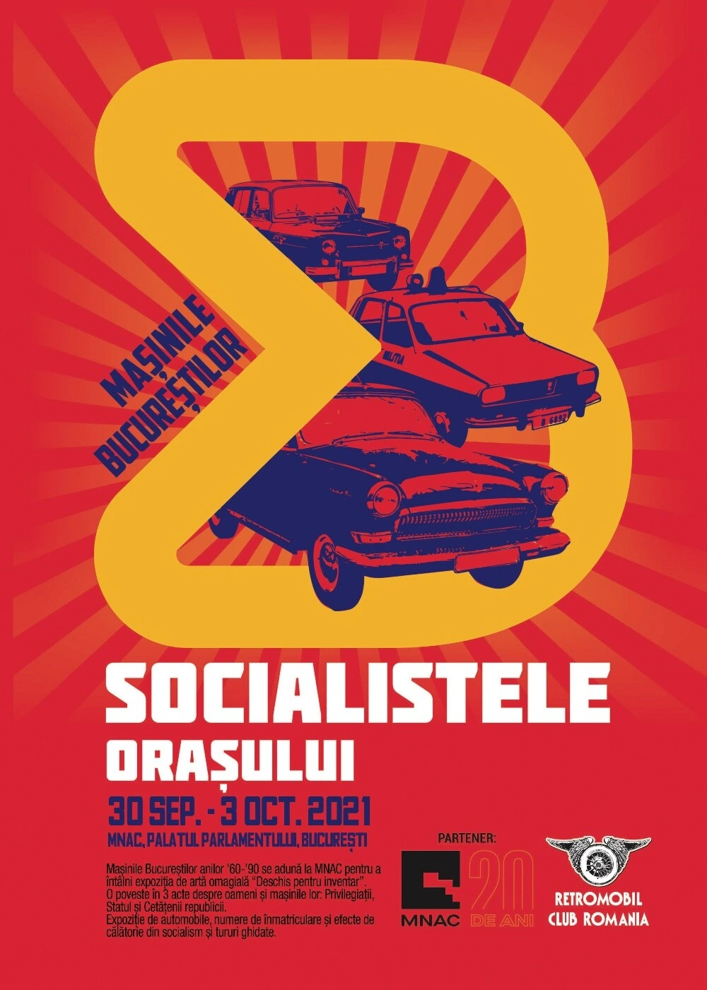 Astăzi, mașinile sufocă orașul, dar până acum 30 de ani lucrurile stăteau cu totul altfel. Cum, aflăm în expoziția de (auto)vehicule, plăcuțe de înmatriculare și memorabilia auto de la MNAC, organizată de Retromobil Club România. Organizată în trei părți (Privilegiații, Statul și Cetățenii Republicii), expoziția poate fi vizitată în cadrul unor tururi ghidate pe 1, 2 și 3 octombrie - stați cu ochii pe pagina de facebook a muzeului pentru detalii. Ca să-ți faci o idee despre ce o să vezi, ține cont și că vor fi trecute în revistă cele trei mari etape ale comunismului made in Ro: stalinismul, destalinizarea și național-comunismul ceaușist. Evenimentul marchează finisajul expoziției cu lucrări omagiale din colecția muzeului Catalog 2019. Deschis pentru inventar. (Ioana)
