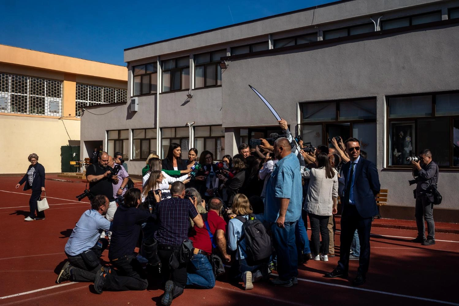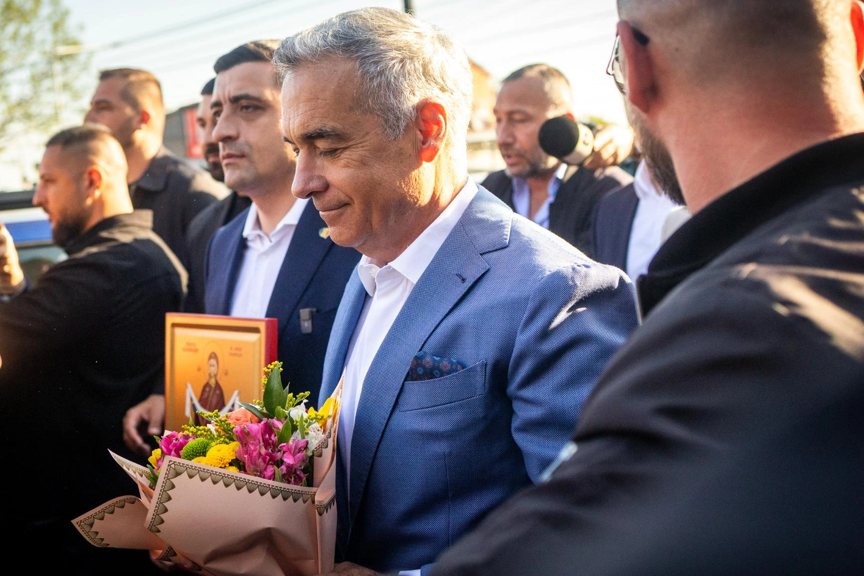 George Simion & Călin Georgescu au votat, însoțiți de suporterii lor, la Școala gimnazială nr. 1 din Mogoșoaia.