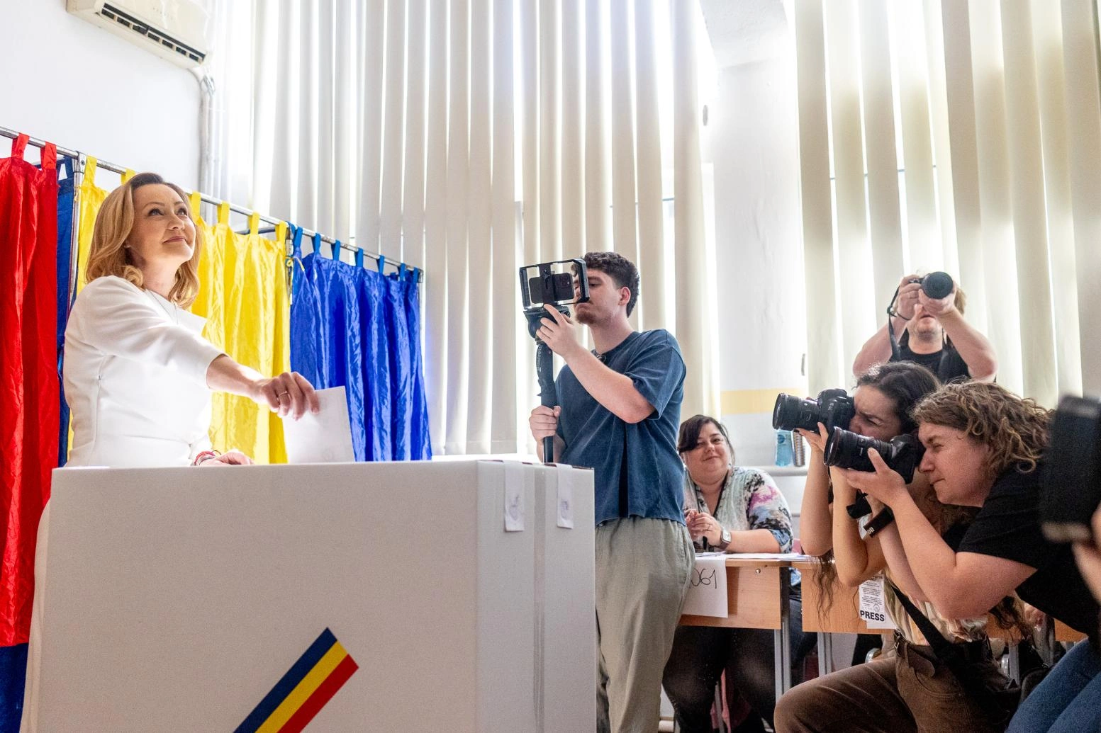 Elena Lasconi a votat la Colegiul Tehnic „Mihai Bravu” din București.