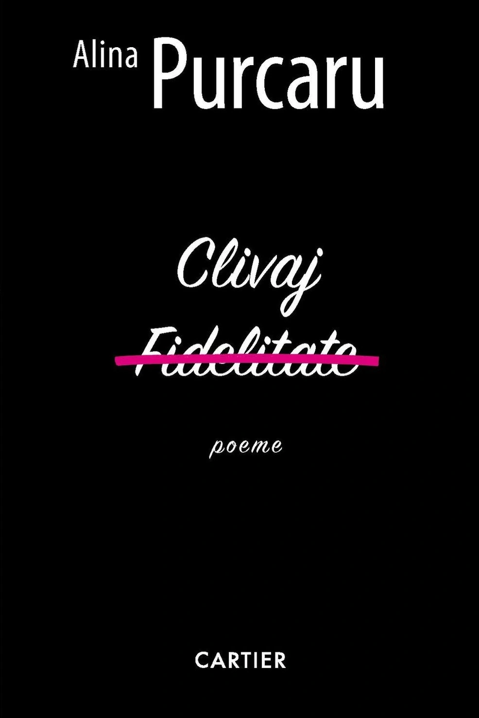 Cel mai nou volum de poezii al Alinei Purcaru, Clivaj, publicat la editura Cartier, reunește poeme despre dragoste, femei, maturizare.