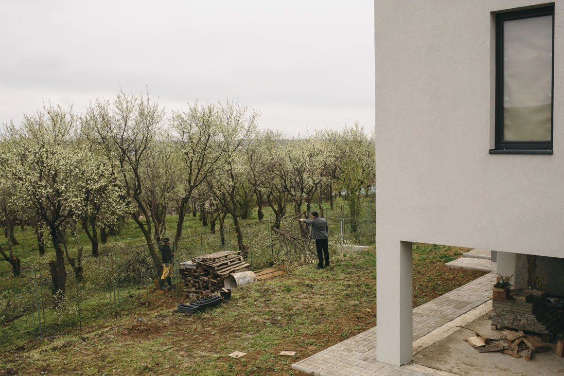 E straniu să vezi într-un sat din mijlocul Moldovei o casă care arată ca un mic muzeu de artă contemporană - o îmbinare (aproape futuristă) de linii și unghiuri drepte, ferestre mari, înalte, și forme cubice - aflată la marginea unei păduri și cu o livadă de meri în spate. Matei vorbește despre această casă ca despre o „lucrare”, un „proiect” care cere viziune, timp, răbdare și bani. Au reușit să strângă o parte din banii pentru casă după doi ani - între 2010 - 2012 - în care Matei a fost plecat în Canada, și apoi în SUA (el lucra ca profesor, iar ea în domeniul cercetării); tot în felul ăsta au reușit să pună niște bani deoparte pentru studiile fiicei lor, Ioana, care a făcut designul la Londra.