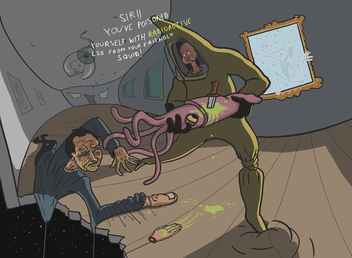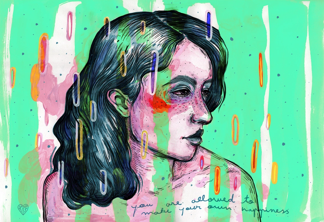 Și-n ilustrațiile Liviei vezi frânturi de final de lume, dar unul mult mai intim. Te privește-n ochi, te decorporalizează, te aruncă printre stele, te tăvălește prin culori tari și te-ntoarce înapoi spre tine, să te gândești la singurătate, fericire și tot ce-ți mai plutește prin cap. A, și să-i dai follow pe Instagram, postează chestii mișto.