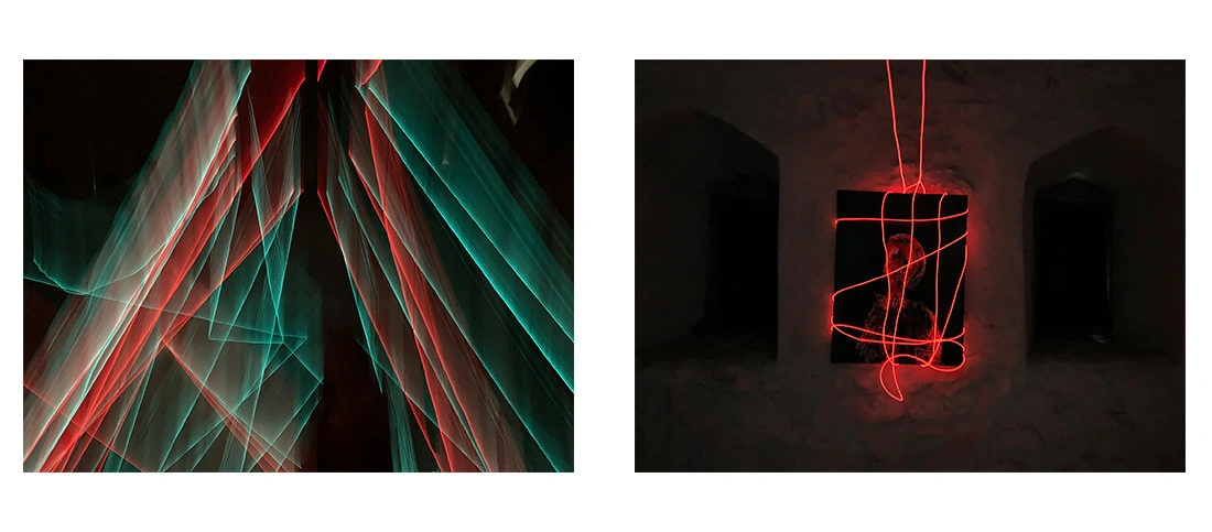 Seria de fotografii a Oanei Stanciu, artistă stabilită în Edinburgh, ne-a acompaniat în drum spre Turnul Negru, unde duo-ul Subsequent din Copenhaga ne-a plimbat prin etajele subconștientului cu tablourile și instalația lui de lumini. Cu cât te cățărai mai spre vârful fostului turn de apărare, lucrările căpătau o natură din ce în ce mai abstractă, iar lumina se diminua.