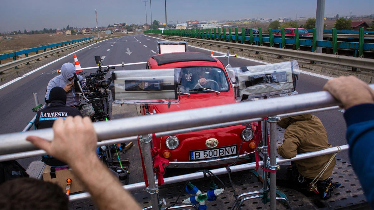Și mașina din film era roșie, un Fiat Cinquecento. Din scenariu a fost așa. Unde dracu găsim mașina asta? mi-au zis asistenții și echipa de producție. Au căutat și, da, sunt patru Fiat-uri în București. Unul e stricat, unul e alb, unul e negru și ăsta e roșu. L-am închiriat și mi-am făcut damblaua.