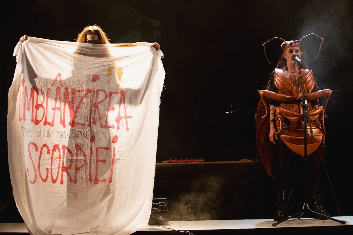 Scorpia neîmblâzită la Teatrul Național Cluj-Napoca este un spectacol-turnantă pe care Leta Popescu a adus întrebări despre teatru din mai multe (toate?) perspective posibile, stivuind opinii, argumente și contra-argumente într-o sinteză a problematicilor teatrale post-pandemie. Ce mize are teatrul azi, prin ce medii comunică el (live vs. online), cum ne raportăm la teatrul european (sau nu ne raportăm), cum e cu egalitatea de gen în teatru și autoritatea vedetelor, cum e să fii tânăr și/ sau femeie într-o instituție de spectacole (structurată conservator ierarhic), ce raport este între regizor și dramaturg, cum / dacă se rescriu clasicii, unde este publicul în toată frământarea asta, ce face el (vine la teatru?) și ce nevoi are etc. Leta Popescu reușește aici să orchestreze o multitudine de teme într-o autoreflecție asupra teatrului și a aparținătorilor săi – actori, tehnicieni, regizori, dramaturgi, instituții de spectacole, public – fără să dea un răspuns tranșant. Și asta e grozav de teatral în esență, căci fix asta este treaba artei, să ridice întrebări, nu să dea răspunsuri.