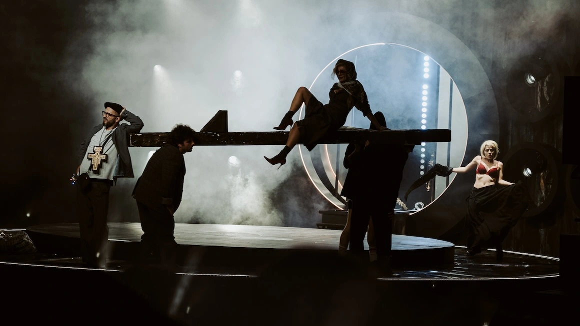Dark play de Carlos Murillo, regia Radu Apostol, Teatrul Excelsior – tot un spectacol dark, dar nu în registrul mitologiei rurale, ci al celei digitale. Cyberbullying, jocuri de roluri în mediul virtual, manipulare și dezvoltarea identității la adolescenți într-un text vizionar cu iz de policier, scris în 2008, cu mult înainte ca agresivitatea și manipularea să devină norme pe rețelele sociale. Apostol creează un spațiu hibrid, între real și virtual, delimitat de muzică live, filmări și retroproiecție în timp real, o zonă semi-întunecată, dominată de albastrul ecranelor și de Matei Arvunescu în rolurile lui Nick și soră-sa, un personaj masculin cu un alter ego feminin ca o tumoare, tenebros, manipulator, plin de impulsuri și lipsit de control, prea tânăr ca să discearnă tradiționalul bine de tradiționalul rău. O performanță actoricească notabilă pentru Arvunescu într-un spectacol noir despre ființele umane în era digitală.