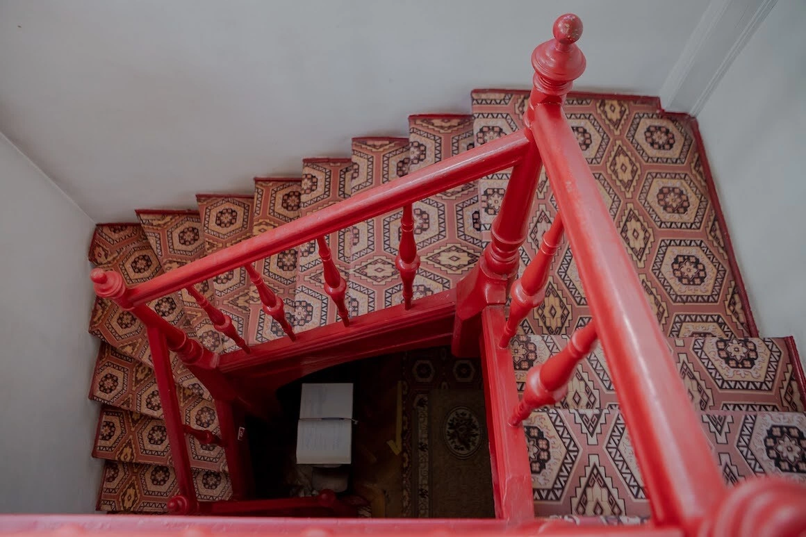 Intrăm în casă și primul lucru care-mi sare în ochi este același spectru cromatic ca în exterior: pereți albi și o scară roșie ce leagă parterul de etaj și mansardă. Asta ar fi fost alegerea lui Arghezi încă de la început, să combine albul cu roșul, inspirat de locuitorii mahalelei, care primăvara legau șnururi albe și roșii de copaci, pentru a avea un an roditor.