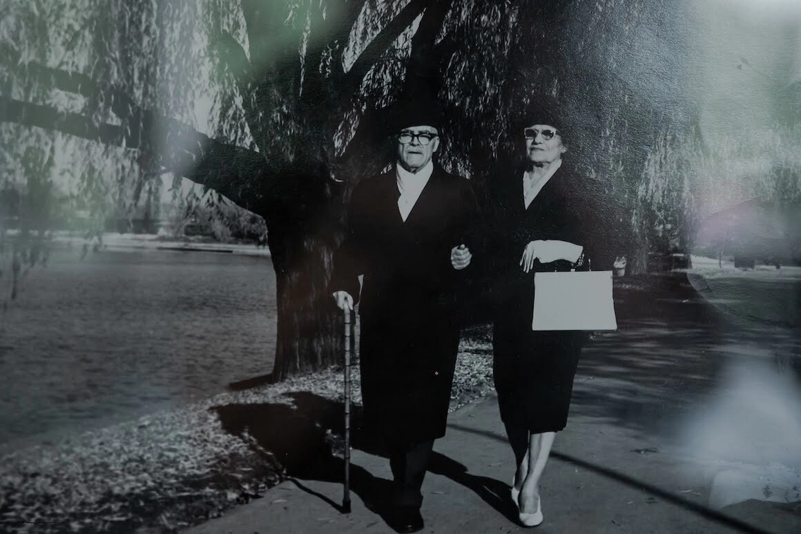 „Tudor Arghezi era un familist convins”, zice Dorothea. „Pentru el, familia chiar era pe primul plan. Se știa că, atunci când era invitat la vreun eveniment, el spunea așa: voi veni cu familia, așa că trebuie să-mi rezervați patru locuri.” Muzeografa îmi arată și o poză cu Arghezi și soția plimbându-se prin Herăstrău: „Amândoi erau foarte eleganți”, observă ghidul meu. Și, într-adevăr, au un aer distins și relaxat totodată, nu genul ăla de eleganță rigidă, de cuplu care-și scoate hainele de sărbătoare ca să iasă în lume la nunți și botezuri.