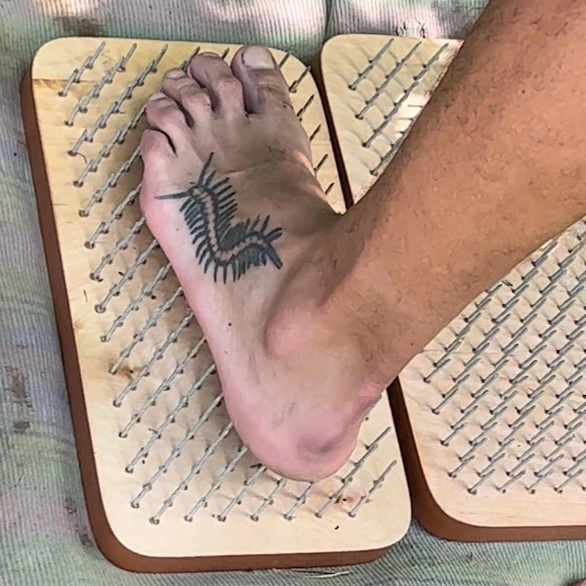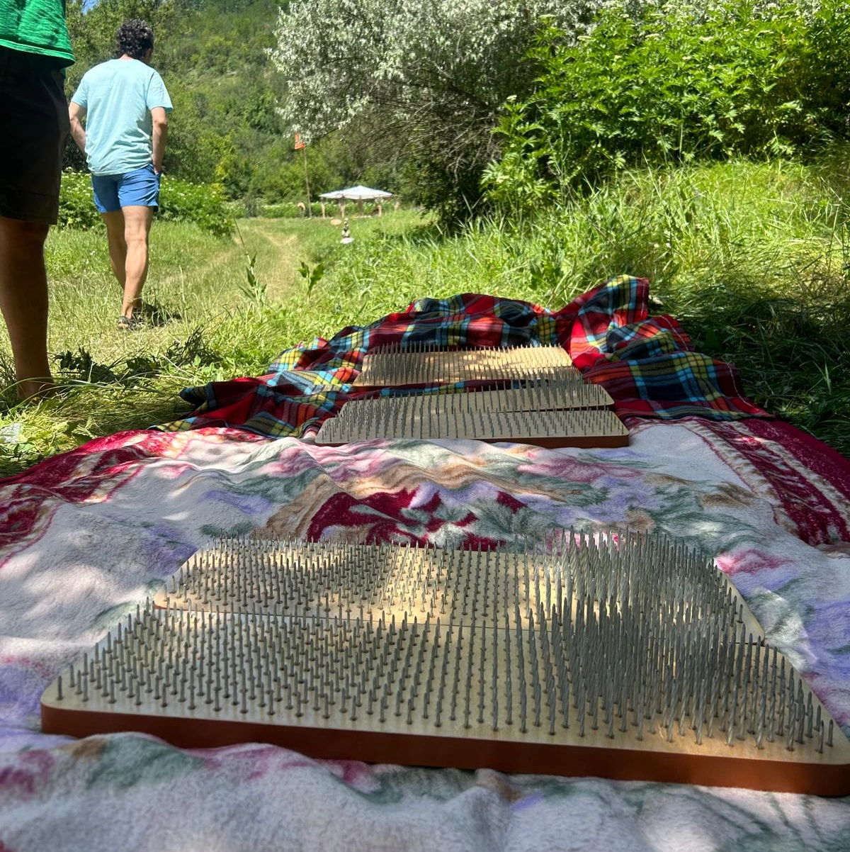 Una dintre atracțiile de netăgăduit ale festivalului erau paturile de cuie. Un domn așeza la marginea drumului din festival astfel de paturi pentru picioare. Intimidante, modele deveneau tot mai dureroase, pe măsură ce densitatea cuielor de pe ele scădea. Era un pic complexant să vezi cum alții, chiar copii, se suiau cu atâta ușurință pe ele, în timp ce mie mi-a trebuit ceva muncă psihologică să mă conving. O capacitate de reziliență cât mai mare garanta efecte miraculoase. La scurt timp, omul a instalat și paturile de cuie pentru spate, într-adevăr relaxante și cu o cale mai puțin dificilă de parcurs până la modelul cu cele mai rarefiate cuie. Nu pot spune decât că erau relaxante atât cu tricou, cât și fără.