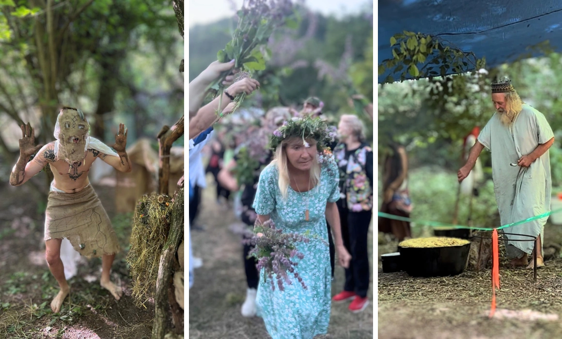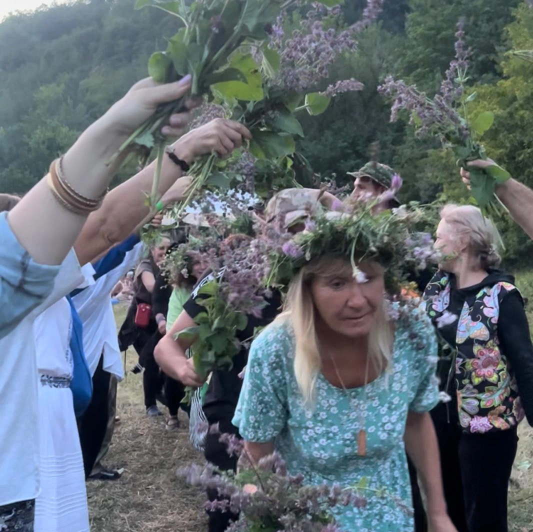 În cea de-a doua seară s-a celebrat Ivan Kupala, solstițiul de vară în stilul slavilor răsăriteni – un moment care mi-a cimentat atașamentul față de festival. O adunătură mixtă de vârste și tipologii, femei cu coroane mari de flori pe cap, dansând în jurul focului de tabără la apus și amurg, și melodia care poartă numele festivității repetată pe parcursul serii. În timpul horelor au loc momente suprarealiste, cum ar fi acela în care toată lumea își masează pe spate partenerului de dans din față sau dansul rusofonilor pe Trandafir de la Moldova, în întuneric.
