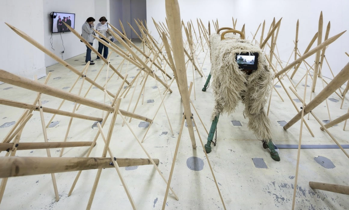 Și, aflat în expoziție, nu poți să nu observi că acestui curator îi e absolut egal că Acostioaei pare un ateu critic la adresa instituției bisericii, pe care o vede ca pe o convenție socială discutabilă, ridicolă și costisitoare. Așa cum îi e absolut egal că Paul Gherasim își declară, în scris, opțiunea pentru ortodoxia locală, dar și pentru gândirea filosofic-religioasă asociată ideii de Divinitate, cu majusculă. Imparțialitatea asta nu e doar o echidistanță cinică, ea e acea dublă distanță de care vorbeam, care îi permite, în acest punct din expoziție, să pună în funcțiune, în modul cel mai direct, păgânismul demonic al folclorului local, credința ortodoxă cea mai pasionată, dar și refuzul net al religiei din partea unui om contemporan, cât și declarația de apartenență la un anumit orizont filosofic sau religios a altui contemporan.
