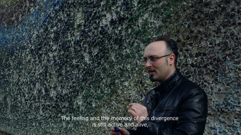 Dincolo de zona asta de instrumentar de bază, la nivel conceptual, Grigorescu urmărește și să pună, în mod constant, textul de propagandă în fața realității de pe teren, obținând un efect de nepotrivire între cele spuse sau scrise și realitate. Ca indicație în acest sens, unul dintre cadre observă, cu ironie, o mare pancartă cu text, pe un fundal roșu textil, atârnată în spațiul public undeva la capătul unui tramvai, lângă niște dărâmături. De parcă textul și doar textul ar putea repara dezastrul produs de cutremur.
