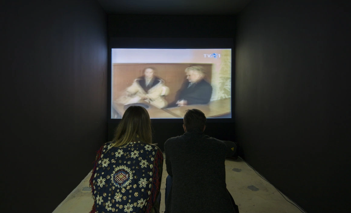 În primul rând, faptul că nu putea fi văzută. În al doilea rând, lipsa unui scaun sau a unei bănci pe care să poți sta jos s-o vezi, în lipsa căreia, erai complet descurajat, ca vizitator naiv, să te uiți la o proiecție strâmbă pe un perete dintr-un hol îngust. În plus, proiectorul fusese setat în așa fel încât reda imaginea ca 16:9, adică conform geometriei monitoarelor noastre moderne de astăzi, de calculator sau de laptop, când de fapt filmul fusese înregistrat în format 4:5, adică acel format specific vechilor noastre televizoare, care e mai mult pătrat decât dreptunghi. Efectul acestei deformări – imaginea părea mai lată și mai scundă, oamenii filmați părând cumva pitici și grași, iar tot filmul devenea într-o oarecare măsură, să fiu iertat, ridicol, pentru că, pe românește, arăta aiurea. Din nou minus la curator. Nu te porți așa cu o lucrare importantă a unui artist major.