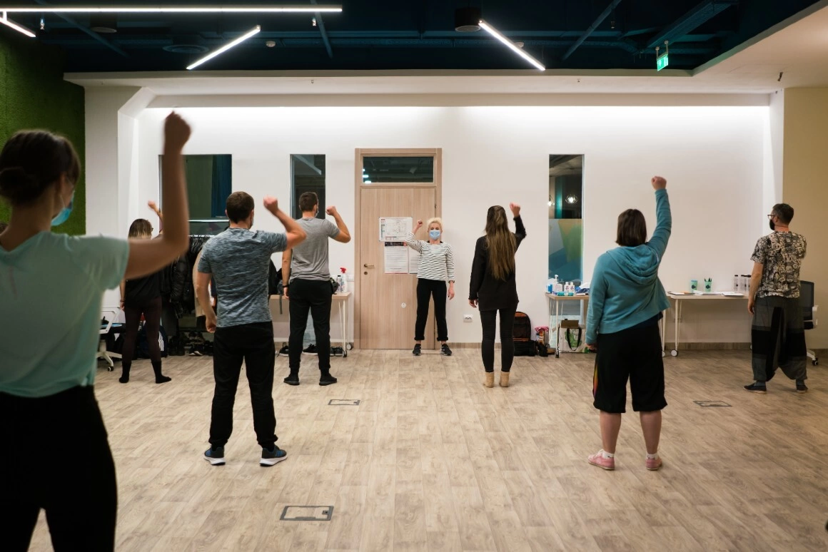 La prima ședință Diana spune că a mers pe exerciții de cunoaștere, de dinamică a echipei. „Pentru dinamica grupului am lucrat pe exerciții de limbaj non-verbal, pe mișcare browniană în spațiu, pe modul cum reușim să ne ascultăm, dacă reușim, sau nu, să ne găsim un ritm comun de deplasare. Toate sunt lucruri de bază, evident inspirate din antrenamentul actorului. Totdeauna am crezut că mintea fără corp și corpul fără minte nu au cum să se echilibreze dacă nu le ajutăm”, povestește actrița.