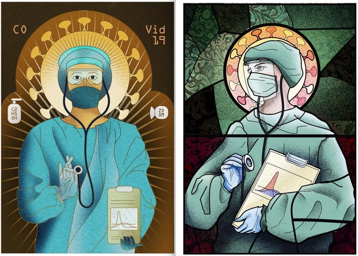 O serie de ilustrații realizate de artista Wanda Hutira pentru o campanie a agenției de publicitate McCann România a fost sursă de nemulțumire pentru Biserica Ortodoxă Română și Primăria Capitalei din mandatul Gabrielei Firea. Artista a înfățișat medicii folosind un stil ce trimitea la reprezentările sfinților: erau prezentați ca niște figuri înconjurate de lumină, cu aureole și mâna ridicată a binecuvântare. Mai multe panouri cu acești sfinți-medici au fost amplasate prin București. BOR a criticat lucrările pentru că ar fi fost doar „o încercare jenantă de rapt simbolic și maltratare vizuală a iconografiei creștine”. Pe scurt, „un demers blasfemiator” și „o ofensă” adusă medicilor, care cu certitudine nu se cred sfinți.