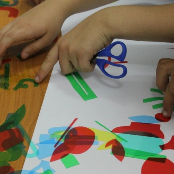 Filip decupează concentrat o fâșie de plastic roșu, pe care o lipește pe coala de hârtie, unde se odihnesc unul lângă altul un bărbat galben și un ghiveci de flori, pe care toată lumea îl confundă cu o găină. „Ce e linia aia?” îl întreb. ”E pentru textură”, zice. „Da’ textura ce e?” „Textura e aia din care e făcută lumea”, mi-o servește el, după o lungă pauză de gândire. Filip are 7 ani și e unul din 45 de copii care după ore la centrul social de zi „Eu și prietenii mei”. După ce, în ultimele două luni, puștii și-au share-uit din imaginație la ateliere cu unii din cei mai activi artiști contemporani din România, azi își deschid expoziția. Veștile foarte bune sunt că: lucrările pe care le veți vedea la Artă faci, şcoală primeşti pot fi luate acasă, contra unor donații; banii strânși vor transforma sălile unde-și fac lecțiile în Spații creative pentru educație.
