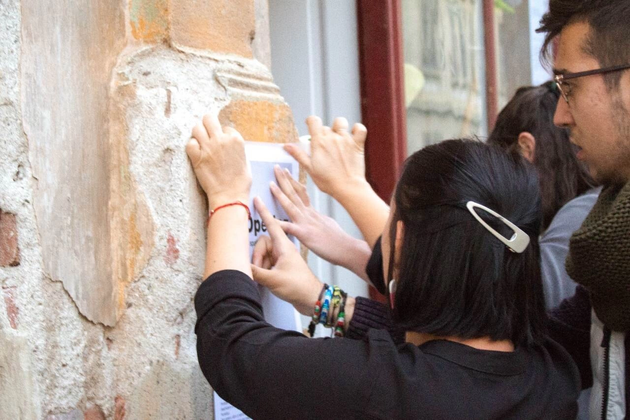Pe cât de celebră fațada, pe atât de mic și necunoscut încă interiorul. Locuirea lui a început, de fapt, în aceste zile. De vineri încoace, spațiul se animă, seara mai ales, cu rumoarea voluntarilor care vin să zugrăvească, să scoată parchetul laminat și să-l rașcheteze pe cel vechi, de lemn, aflat dedesubt. Afară, se stă la taclale și la un pahar cu vin. Trecătorii se opresc mirați. În vitrină tronează o găleată, un mop și alte câteva ustensile domestice. Turiștii veniți la Noaptea Albă a Galeriilor întreabă dacă e o expoziție de artă, crezând că e vorba de o instalație sau de un decor atipic. Sub ochii noștri, Tribunei nr.13 devine un spațiu destinat artei, care stă deja sub semnul implicării civice. Și va continua în acest fel. Cum ideile bune se nasc prin dialog, inițiatorii s-au întrebat cine vor fi cei care vor intra aici și cum? „Atunci ne-am gândit: ce-ar fi ca spațiul să funcționeze cu adevărat nonstop? Adică să-l poată vizita absolut oricine, prin rezervare prealabilă, pe site, și pe baza unui cod primit la intrare.”