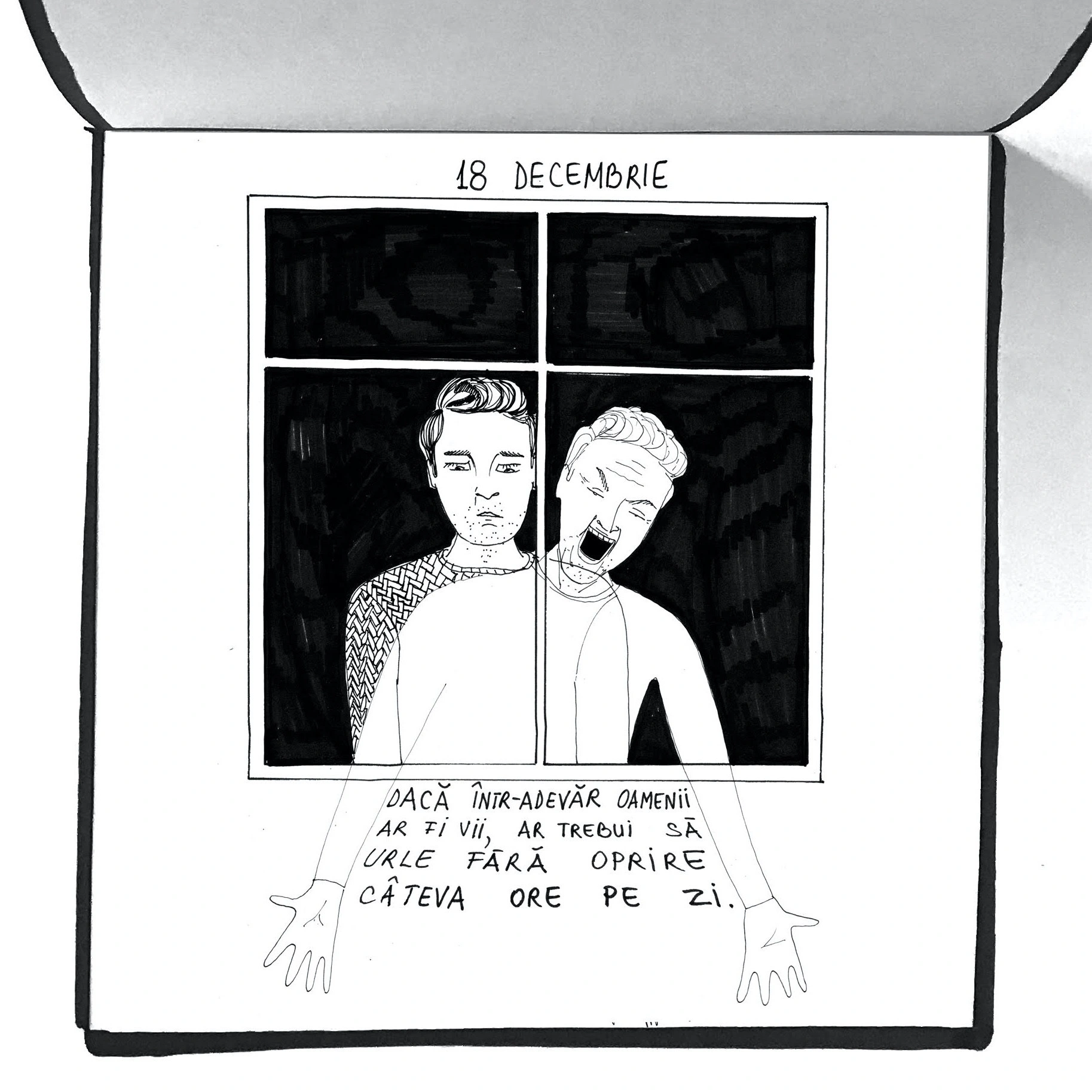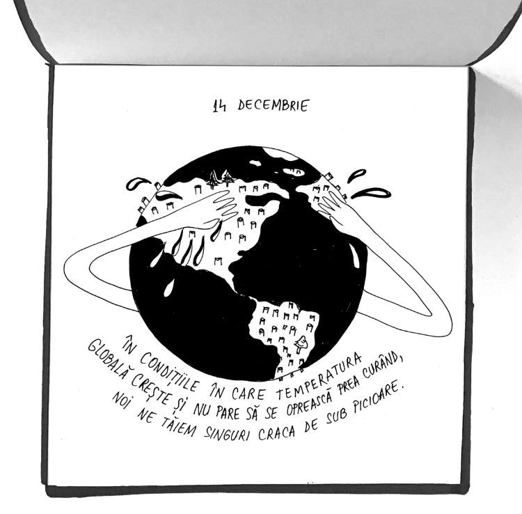 „Să îmi dați fiecare dintre voi din redacție câte un citat sau mai multe dintr-un articol sau interviu, o frază dintr-o carte, o întâmplare din 2019 care v-a plăcut cel mai mult și eu să o ilustrez și să apară în fiecare zi din decembrie până la Crăciun, câte una, ca o bomboană digitală. Ceva scurt și frumos.”