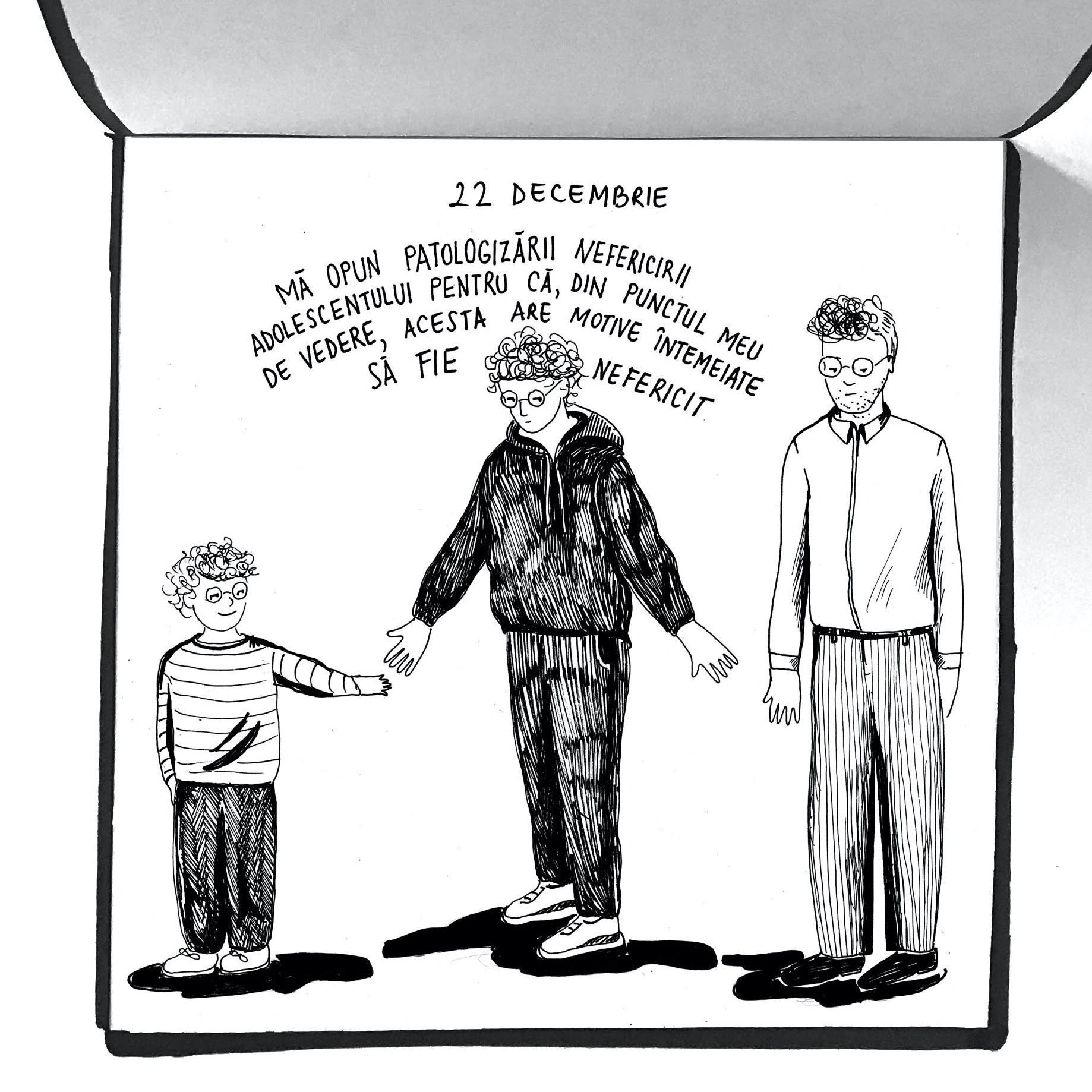 „Mă opun patologizării nefericirii adolescentului, pentru că, din punctul meu de vedere, acesta are motive întemeiate să fie nefericit. (...) Comportamentele de risc sunt doar reacții la nefericire și, în mod paradoxal, modalități de a rezista. Pentru mine, sunt tehnici de supraviețuire.”