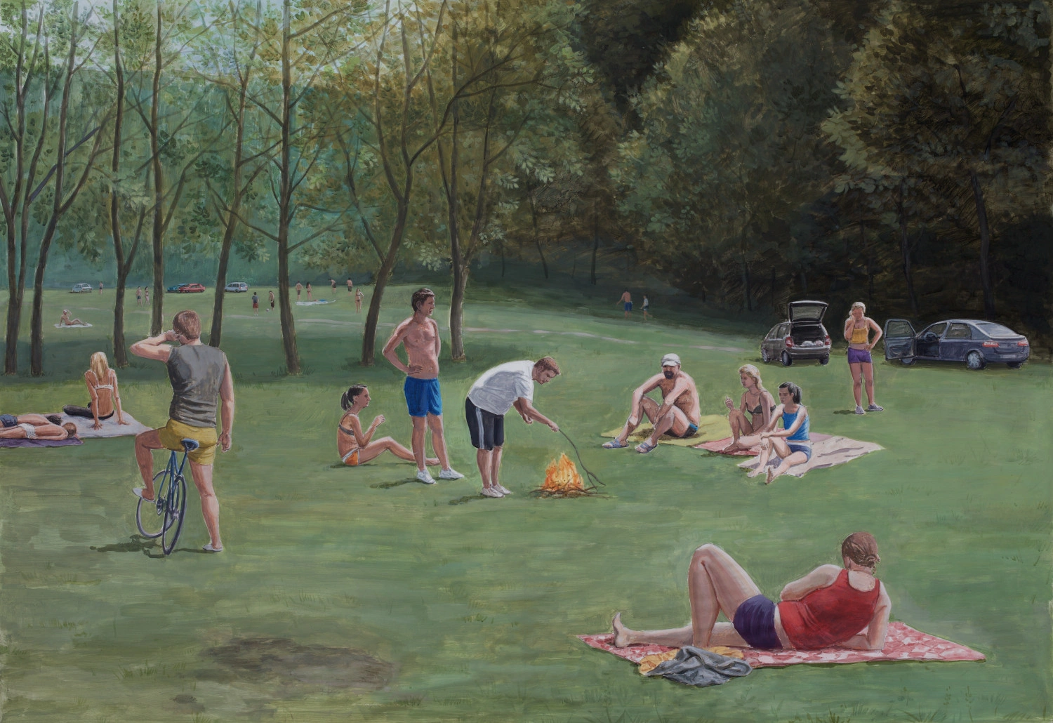 În București, mă duceam cu bicicleta pe la Lacul Morii şi îi vedeam pe oameni la plajă, pe betoane. Era fascinant ca imagine. Eram fascinat şi de oameni care dorm. De odihnă. E atâta umanitate într-un om care doarme. E complet inocent. Când doarme, nu mai e animal, nu mai e fiară. Devine extrem de vulnerabil, într-o lume cumva necontrolabilă. Am o grămadă de picturi cu oameni care dorm, la locul de muncă sau în sala de aşteptare.