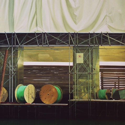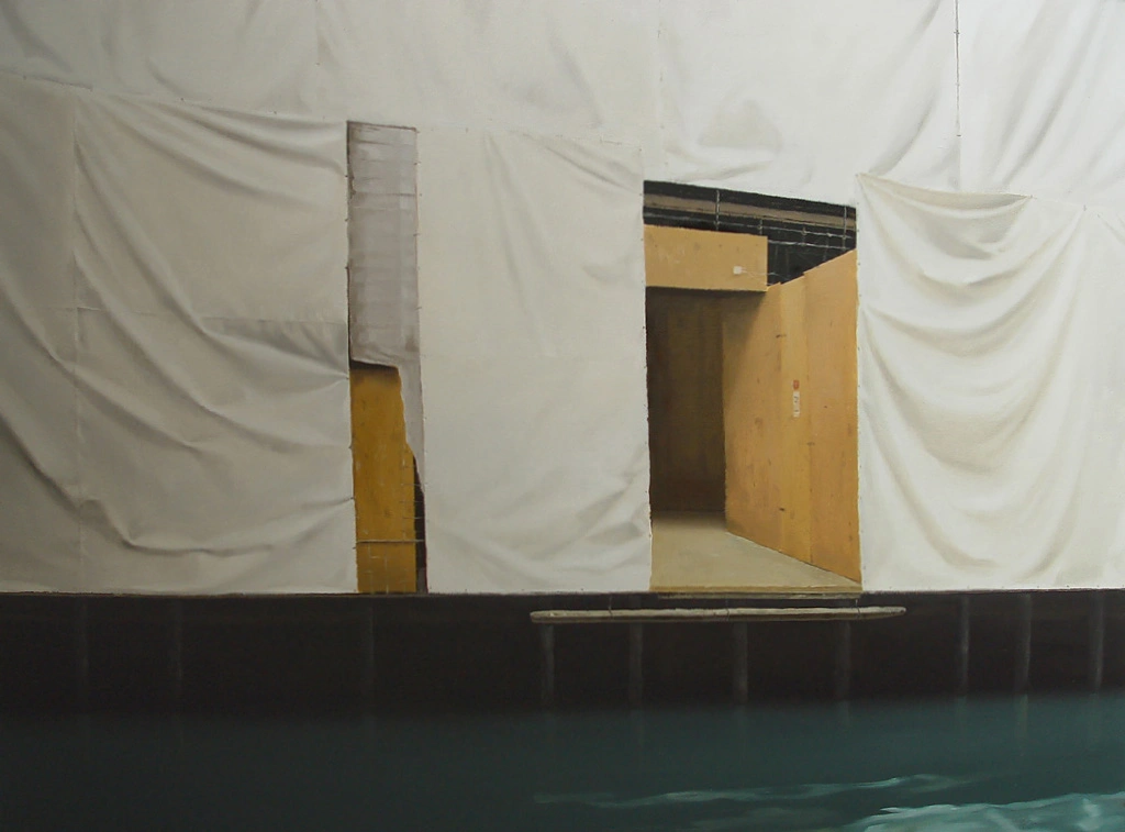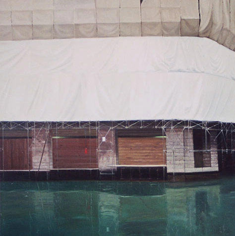 La un moment dat, am zis hai să pictez și eu Veneția. O Veneție personală, nu a publicului, a clişeelor. Mă plimbam foarte mult. M-am lăsat dus de senzori şi mi-am ascultat instinctele. Am avut o serie cu Teatrul „La Fenice”. Arsese în urmă cu șapte ani și era în renovare. Toată structura lui era îmbrăcată în folii de protecţie. Erau probabil schele în spatele lor, dar nu se vedea nimic. Aşa îmbrăcată, arăta ca o lucrare de artă, ca o operă de Christo. Numele, „La Fenice”, trimitea la Pasărea Phoenix care renaşte din cenuşă, ca acel teatru care arsese. Deci avea şi o poveste în spate. Am mai pictat, de exemplu, nişte canale golite de apă, care erau în restaurare. Chestii care fac parte și acum din căutările mele: ruine. Chiar și după ce am terminat școala, am pictat hale părăsite și nave abandonate, ruginite.