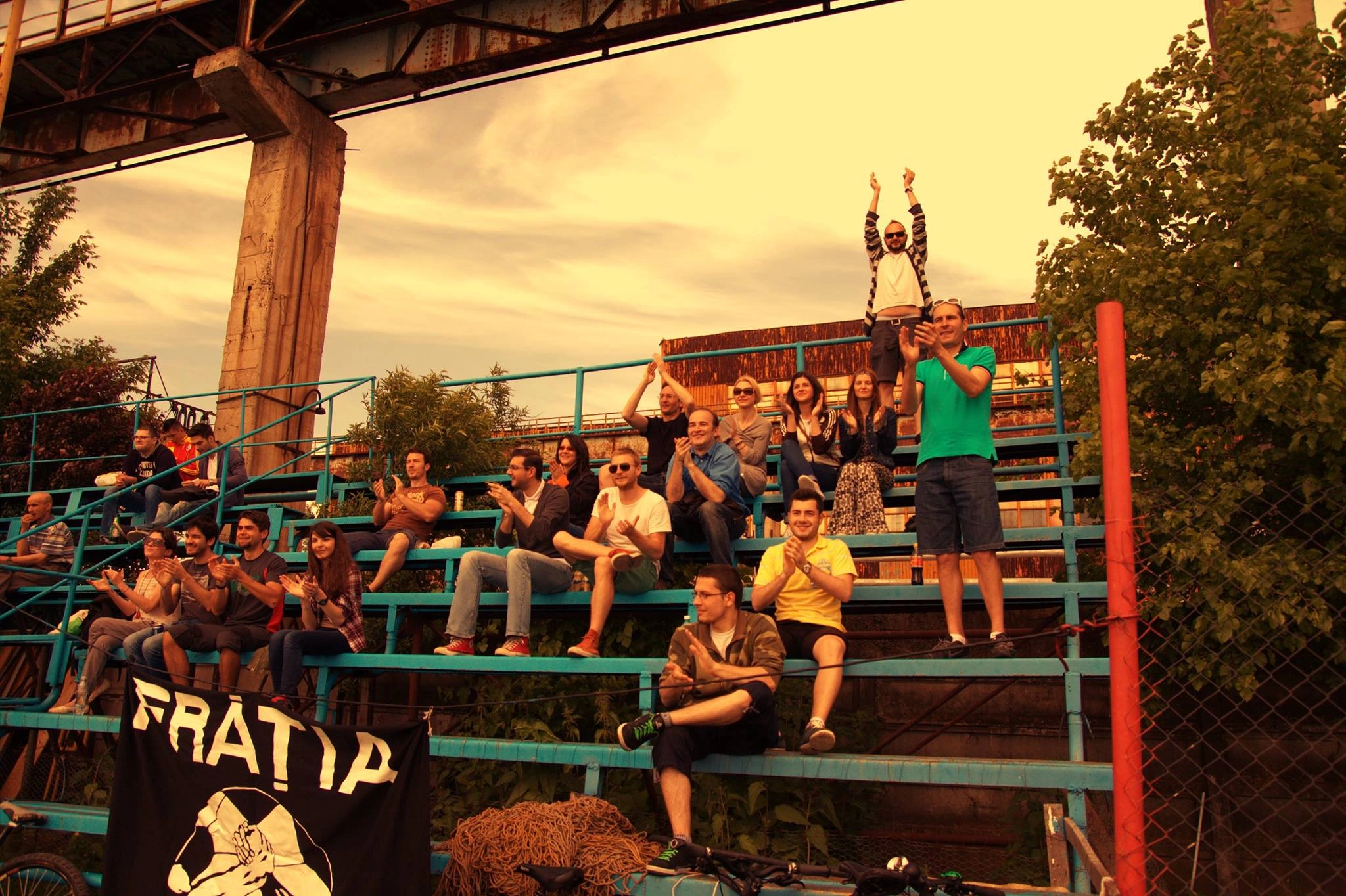 Aici intră în peisaj regizorul Cătălin Farcaș, fost jurnalist de televiziune cu o experiență de 13 ani în reportaj și documentar TV. Aici încep să vină la meciuri activiști, ONG-iști, fotografi, istorici, sociologi. Aici încep și eu să-mi fac drum până în celălalt capăt al Bucureștiului, prin câmp de rapiță, pe drumuri desfundate, printre maidanezi înfometați și ruine de hale industriale pe care natura încearcă să le înghită la loc. Nu mai fusesem niciodată la niciun meci. Nici la Frăția nu mă duc pentru fotbal. Mă duc pentru poveste.