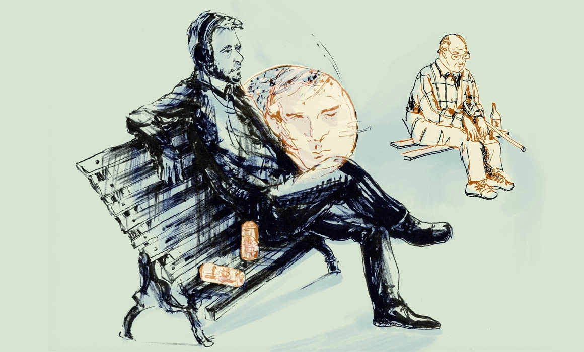 Până la momentul în care am ajuns în parc, „o bere-două” se transformase într-un bax de șase. M-am așezat pe o bancă. În jur era liniște deplină, nu se vedea niciun om. Mi-am aprins o țigară, am desfăcut o bere și am dat drumul la muzică în căști.