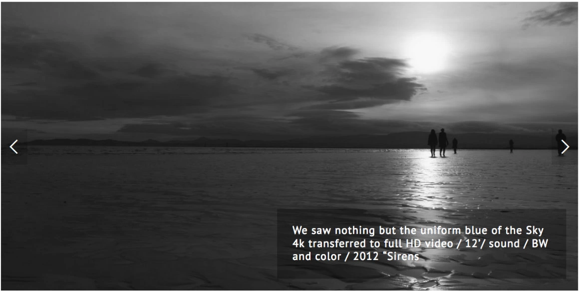 Așa cum expoziția de sus e tipul de expoziție de artă contemporană standard, care trece cu veselie, grăbită, prin conceptualism, constructivism, arte povera, poezie, colaj, instalație, acest prim video – We saw nothing but the uniform blue sky / 2012, e și el, tipul de film standard de artă contemporană. Travelling domol, muzica zen sau horror, cadrele neinteresante, fără estetică, voice-over pretențios și poetic, toate astea se văd și la artiști majori de azi, dar și la artiști minori. În final, rămâne în minte ceva despre singurătate și izolare și cam atât.