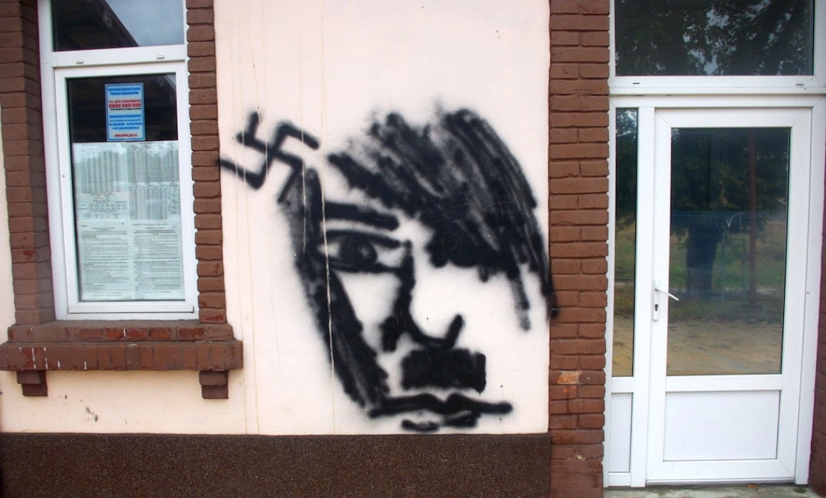 Foto main: Inscripție pe zidul fostei gări din Huși, județul Vaslui.