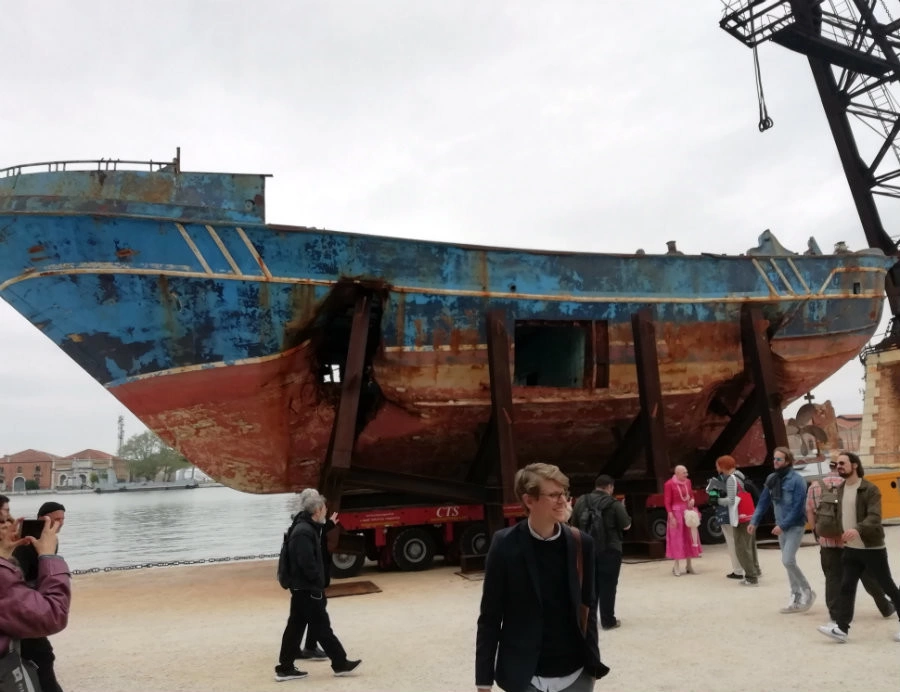 Există şi excepţii de la atare lipsă de ostentaţie. Modul în care „a luat faţa” acestei ediţii artistul elveţiano-islandez Christoph Büchel, aducând pe cheiul de la Arsenale chiar epava micului vas naufragiat în Mediterana, pe 18 aprilie 2015, în care traficanţii libanezi înghesuiseră mai mult de 800 de emigranţi, aproape toţi găsindu-şi sfârşitul în această tragedie, este discutabil în cel mai înalt grad. Büchel a botezat cumplitul ready-made scos din adâncuri de guvernul italian Barca nostra (2018-2019), prezentându-l ca pe un „memorial al migraţiei contemporane”. Mie mi s-a părut a avea aerul unui obiect de magie neagră, coşciugul de fier deformat în care s-au înecat atâtea sute de nevinovaţi devenind, acum, fundal preferat pentru selfie-uri şi poze de grup de la Bienală. Dacă este să fie un monument a ceva, e, mai degrabă, un monument al cinismului fără margini al lumii contemporane.