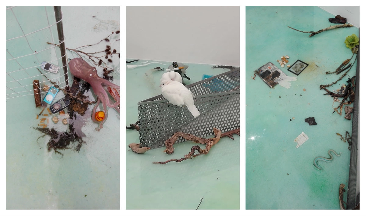 A ajuns oare umanitatea în stadiul ei terminal? Dar Apocalipsa nu vine neapărat cu tunete şi cu fulgere. Umanitatea nu se va sfârşi cu un mare bang!, ci cu un prelung fâs, par să ne şoptească artistele: sfârşim pe o plajă la marea inundată de pungi, imbecilizaţi, plictisiţi şi „prăjiţi”. Simulacre.