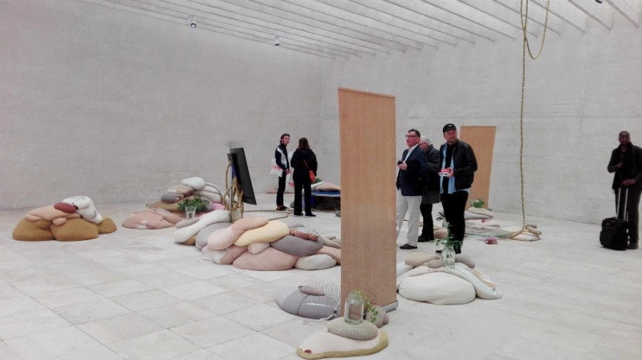 Intrând în Arsenale ai imediat ocazia să constaţi modul inspirat în care Rugoff a lucrat cu spaţiul. De regulă, expoziţia centrală plasată în această enormă hală, ca un mare coridor fără fund, sprijinit pe două rânduri de coloane, pune o problemă curatorială de principiu: nu prea ai cum să expui o lucrare izolând-o de celelalte, astfel încât vezi o operă pe fundalul altor 15, în chip muzeal; vezi, practic, o instalaţie in situ, neintenţionată de artist şi negândită astfel de vreun curator.